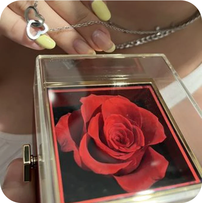 Yes, the necklace included in our rose box is adjustable, making it easy to wear at the perfect length for you. The necklace features a delicate chain with a lobster clasp that allows you to adjust the length of the necklace to your desired fit.