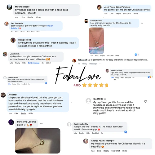 Each order includes a carefully curated Fabulove box that includes a gift bag, a specially preserved eternal rose, and a jewelry piece of your choosing. You can add engravings on each heart, or opt for no engravings!